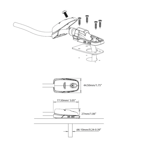 All fasteners are made of 316 stainless steel to resist corrosion in marine environments, and the housing is made of tough, impact-resistant plastic with rounded edges to prevent snagging.